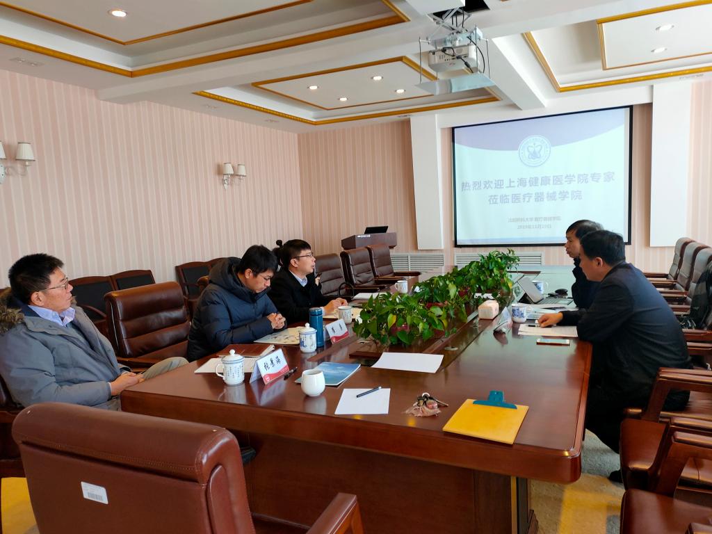 11月19日,上海健康医学院医疗产品管理系主任蒋海洪和朱文明老师应邀来欧冠官网进行调研。会议由学院副院长崔勇主持,学院院长张景海,教务处副处长、学院副院长项荣武,工商管理学院副院长黄哲出席了会议。