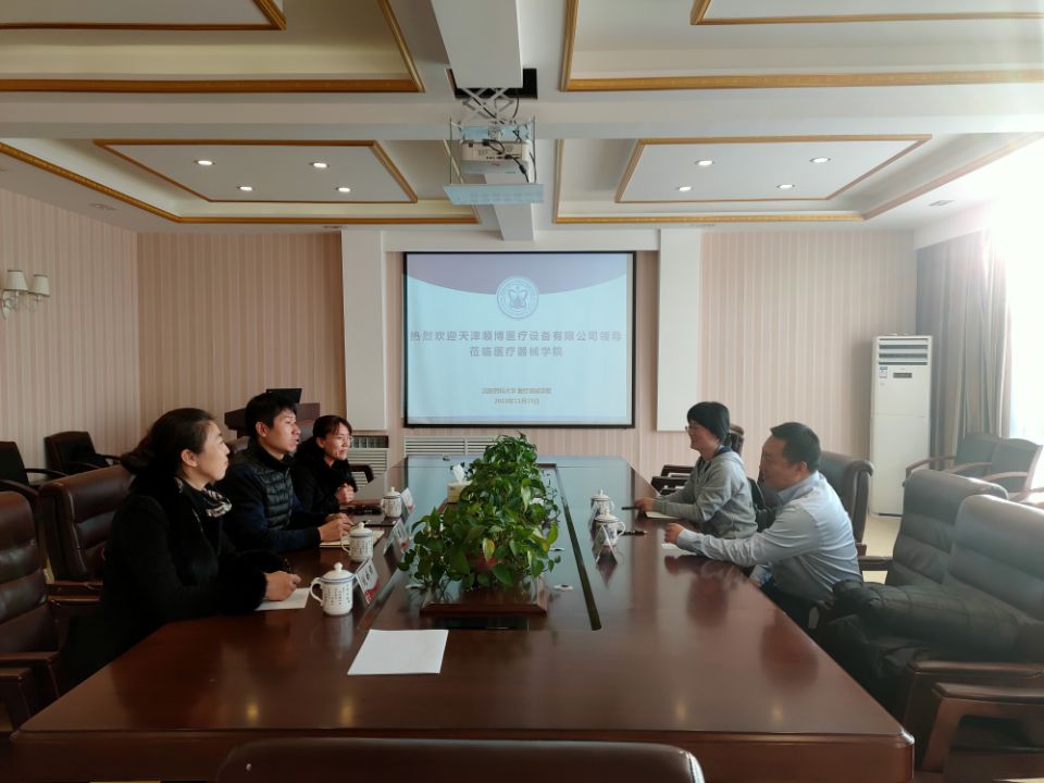 崔勇副院长代表学院对企业两位领导的到来表示热烈欢迎,对天津旭海大健康管理有限公司为学校学院各项工作和活动所做的贡献表示感谢。崔勇就学院整体情况、本科专业设置、教学管理、人才培养模式向企业领导进行详细介绍,并就毕业生专题工作与企业进行了深入探讨,期待学院与企业进一步加强合作交流,共同为医疗器械行业培养人才,实现“校企合作 互惠共赢”。