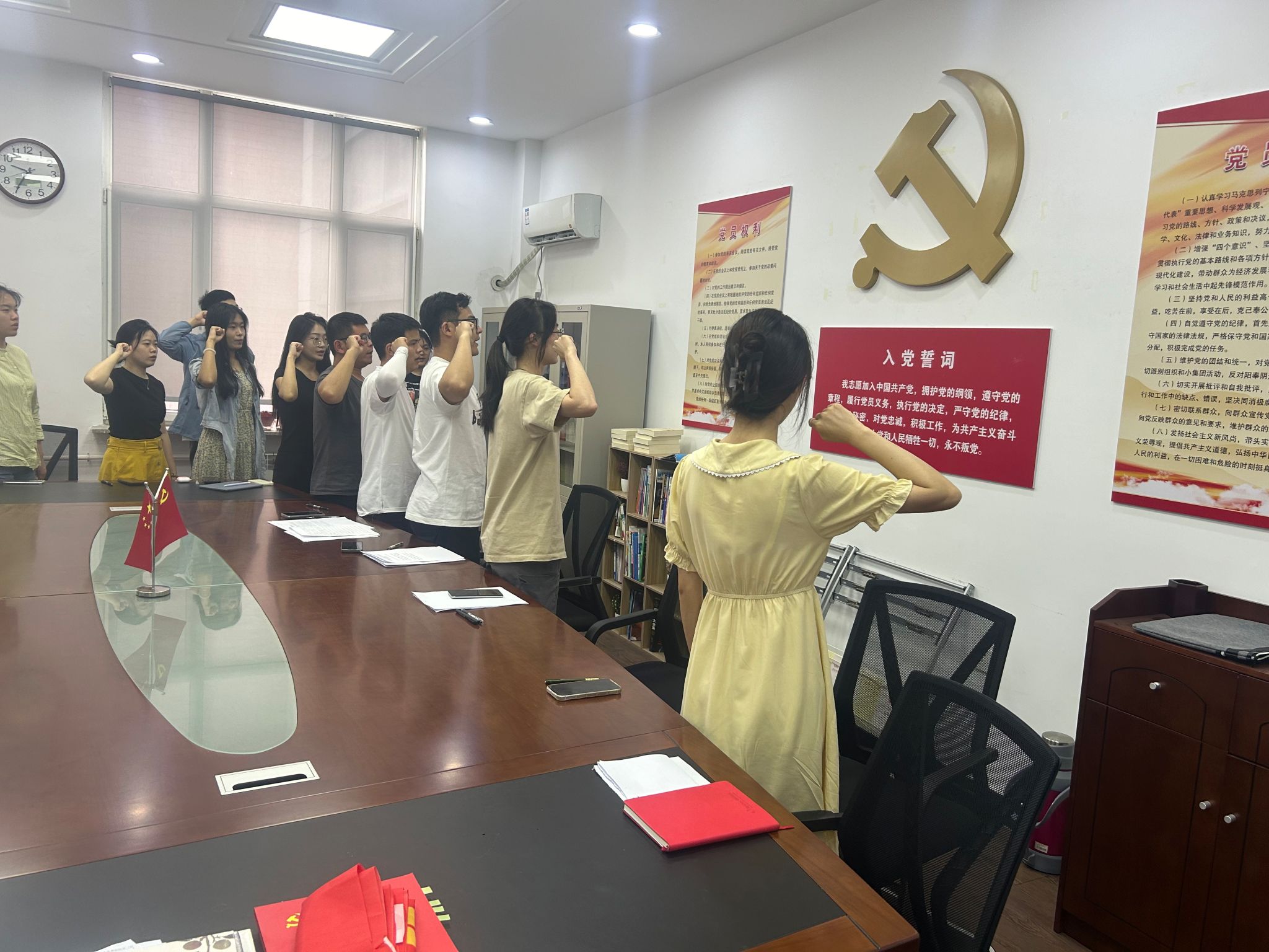 最后,研究生党支部组织开展“迎七一重温入党誓词”宣誓活动。作为党员,既要不忘革命传统,也要践行优良作风,以严明的纪律、昂扬的精神、团结的意志扎实推进党纪学习教育,迎接党的生日!