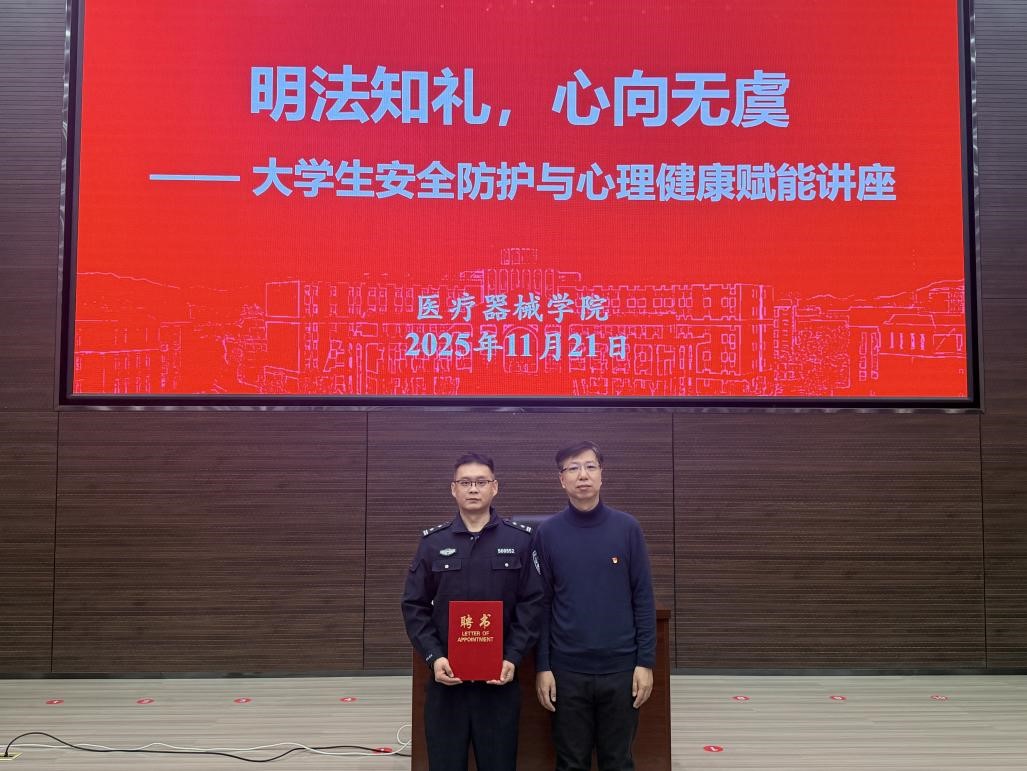 讲座现场还举行了隆重的聘任仪式。学院副院长赵勇山代表学院,正式聘任李举所长为 “欧冠官方网站普法安全教育校外辅导员”,聘书的递交不仅是一份荣誉,更标志着校警合作在安全教育领域的深化升级,为学院安全育人工作注入专业力量。
