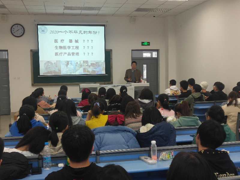张景海院长以“现在 未来”为题,向同学们介绍了欧冠官方网站及生物医学工程的发展历史,从医疗器械产业、生物医学工程学科及医疗产品管理专业的定义引入,以简洁易懂的语言,从产业及学科的形成与发展为学生解读专业,由浅入深。从国内外医疗器械公司所占市场份额及中国医疗器械市场现状分析,鼓励学生强化自身能力,积极投入到中国医疗器械产业的建设中。张院长详细介绍了医疗产品相应管理法规、医疗器械行业产业链涉及的主要环节、行业对人才的需求及本科毕业后的发展方向,使学生对行业对岗位及人才需求有了更清晰全面的认识。同时结合企业对人才培养的需求指出沈药学生的优势与不足,强调同学们需要对专业自信、理解,对自己的未来要有独立的思考,明确自己的学习目标,做社会需要的人才。