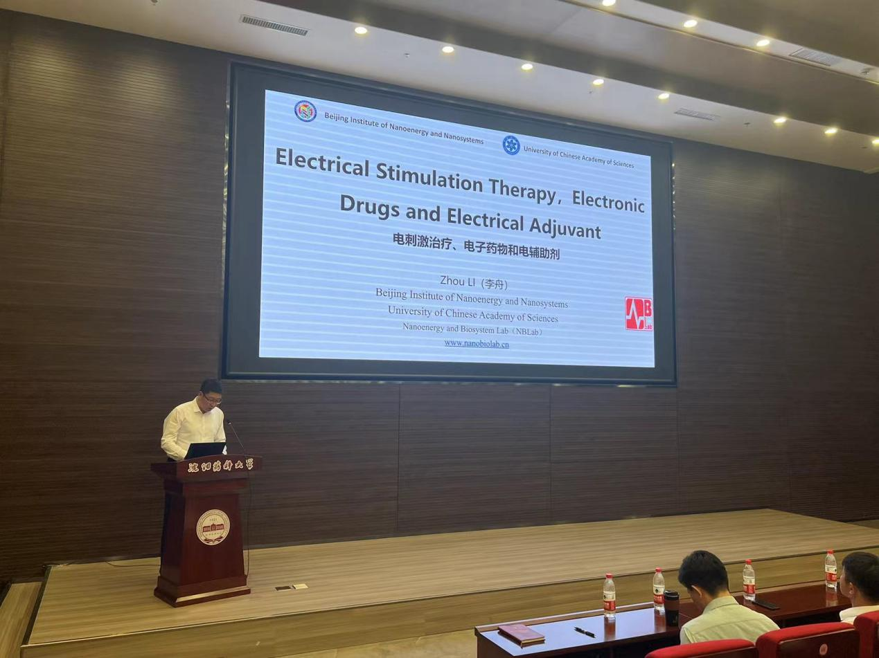 7月5日,由研究生院、辽宁省药学研究生创新与学术交流中心、欧冠官方网站联合举办的“沈药无涯论坛”第351讲——李舟研究员学术报告会于南校区校史馆报告厅如期举行。会议邀请到中科院北京纳米能源与系统研究所所长助理,中国科学院大学教授李舟研究员做题为《电刺激治疗、电子药物和电辅助剂》的学术报告。报告会由欧冠官方网站党委书记吴恩华主持,150余名师生参会学习。