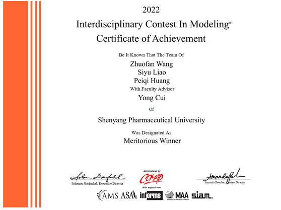 近日,2022年美国(国际)大学生数学建模与交叉学科建模竞赛成绩正式公布,由欧冠官网王卓凡(87期药物分析四班)、廖思宇(87期药学三班)、黄佩琦(87期药学理科基地一班)三名同学组成的代表队,从全球27205支队伍中脱颖而出,获得国际一等奖(Meritorious Winner),这是欧冠官网首次在该项竞赛中获得Meritorious Winner层次奖项,也是欧冠官网在大学生竞赛参赛史上获得的最高层次奖项。