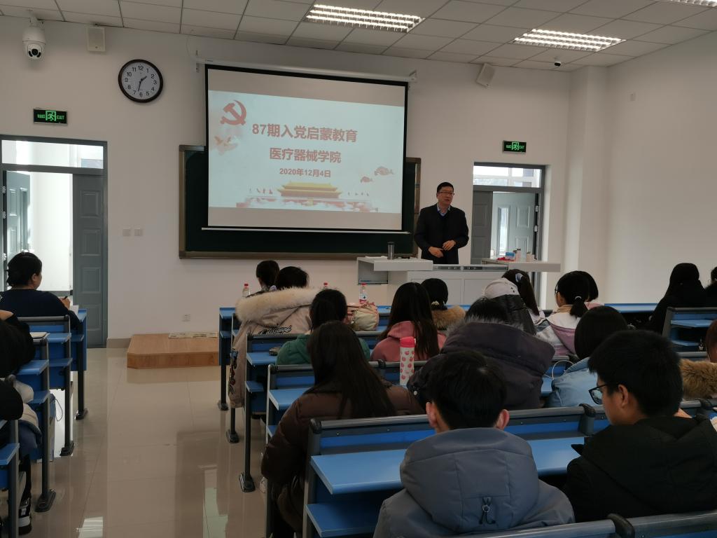 为进一步提高学生对党的认识,提高学生的政治意识,更好的完成党交给新时代大学生的使命与担当,12月4日下午,欧冠官方网站党委书记吴恩华在第四教学楼201教室为2020级全体新生上了一堂生动的入党启蒙教育课。报告会由学院党委副书记赵宏格主持, 学院组织员、辅导员和全体新生同学聆听了党课,重温入党初心。