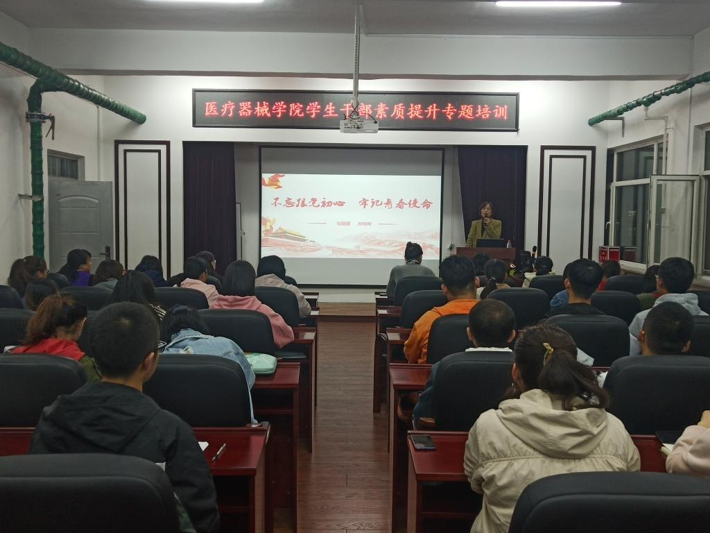 根据欧冠官方网站“不忘初心、牢记使命”主题教育安排,为进一步加强学生干部队伍建设,提升学生干部的业务能力和综合素质,2019年10月10日下午5:40,欧冠官方网站团委组织开展学生干部素质提升专题培训,邀请校团委书记孙皎皎对全体学生干部开展“不忘跟党初心,牢记青春使命”专题培训。学院党委副书记赵宏格、辅导员宋菁出席培训会。培训会由学院团委书记刘娇娜主持。