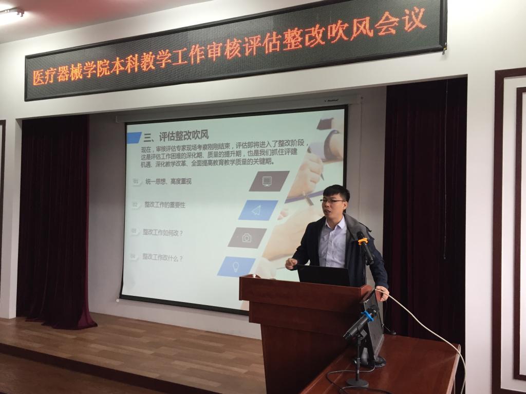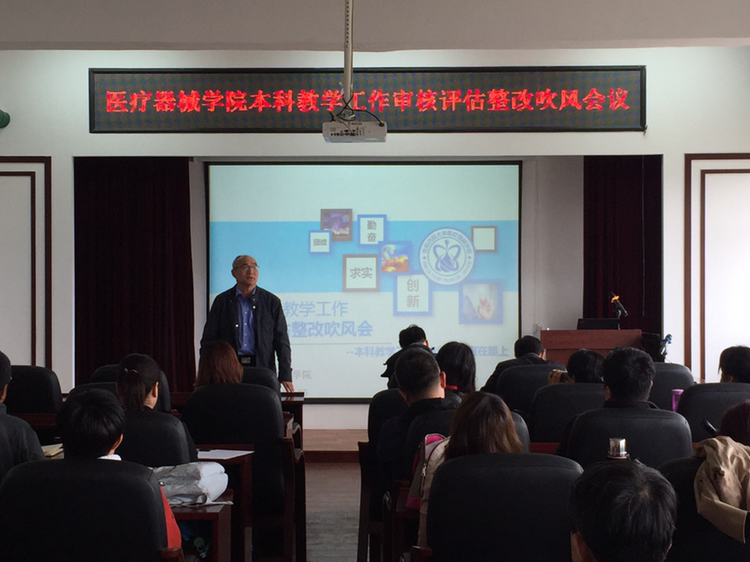 会议主要由前期工作回顾、前期工作成果、评估整改吹风三部分组成。项院长在回顾前期工作、总结前期工作成果时指出,自2018年3月26日学院召开本科教学工作审核评估启动会议以来,在一年多的时间里,全院教职工首先在思想上完成了转变,政治意识发生改观,由最初这个事情与我无关,是少数人的事情,到这件事情人人有关,一定按要求认真做好每一件事情,上下齐心协力,做了大量富有成效的工作,以实际行动为本科教学工作审核评估保驾护航。