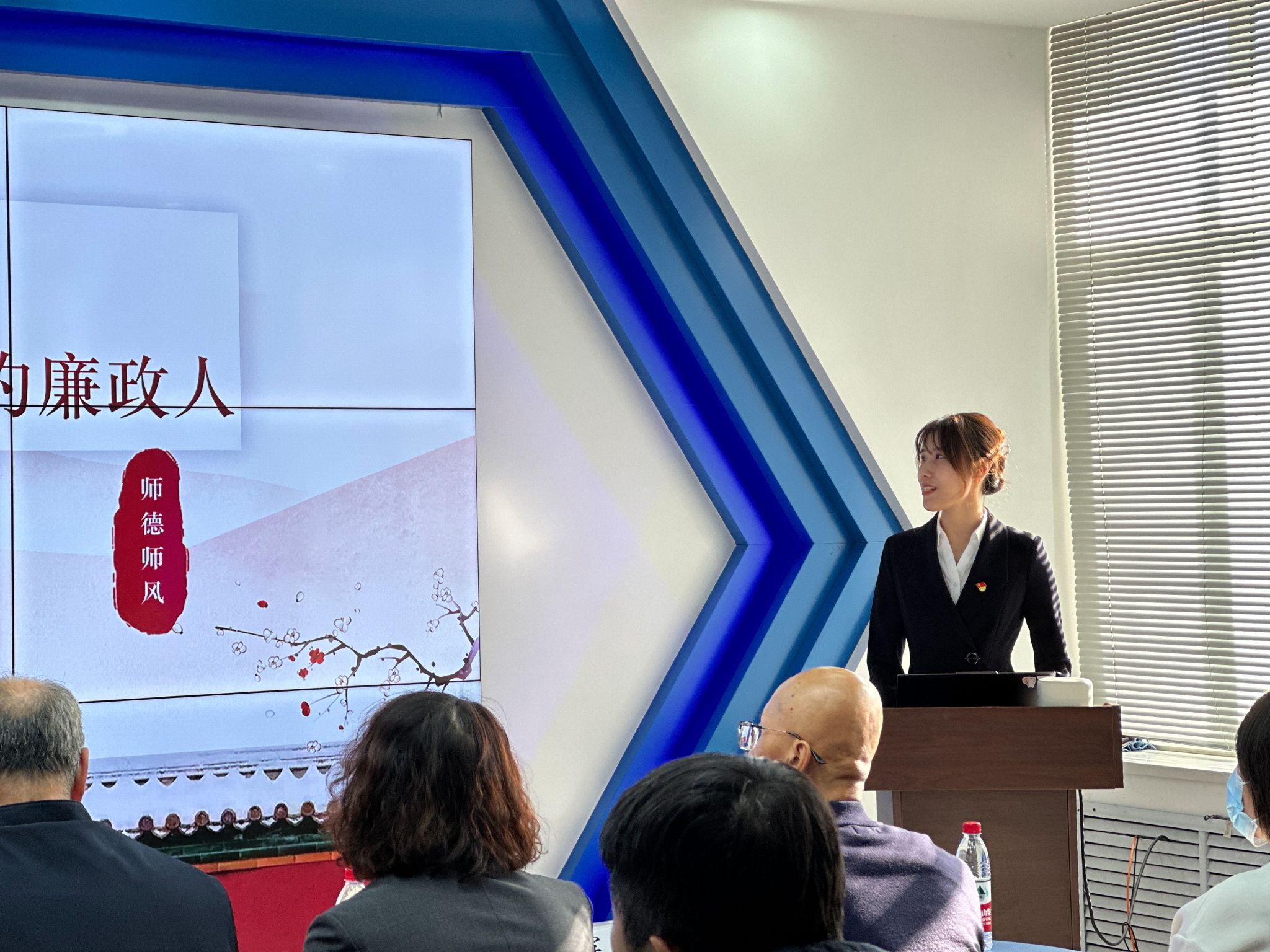 学院4个教工支部共选派8位教师参赛。生物医药信息学教研室杨诗晗以“倡廉洁清风,做新时代的廉政人”为题进行演讲,倡导大家共同构建廉洁清风,做新时代的廉政人。物理教研室杨松紧紧围绕“廉洁润初心,铸魂担使命”主题,倡导大家与廉正相约,以勤政做浆,以廉政做舟,穿行岁月,让梦想成就未来。有源器械工程教研室陈晓朝围绕“习近平总书记关于师德师风的重要论述”、“师德师风建设、科研诚信建设等方面进行阐述,倡导教育工作者当保持一颗初心、一份坚守、严于律己、潜心育人、情系三尺讲台勇攀科学高峰。数学教研室刘方盈围绕“扬清廉之风,育高洁之德”展开演讲,表示廉洁不仅仅是一种文化,更是中华民族传承千年的美德。生物医用材料教研室高亦鲲以深入浅出、细致入微的讲解,向大家生动地介绍了“于谦拒礼”这一典故,彰显了他在办事原则上的坚定,体现了对清正廉洁的坚守。数学教研室杨晓彤在演讲中强调,“廉是师德之基,廉是教之根本”,让大家深刻认识到廉洁的重要性,倡导大家要勇做新时代的“大先生”。生物医用材料教研室廉鹤以“清正廉洁做事,遵守职业道德”为主题,通过生动的案例和深刻的分析,深入浅出地阐释了清正廉洁在个体和组织层面的重要性。生物医药信息学教研室薄韬聚焦师德师风,表达了廉政教育的重要性,更加坚定肩负教育责任的信心。