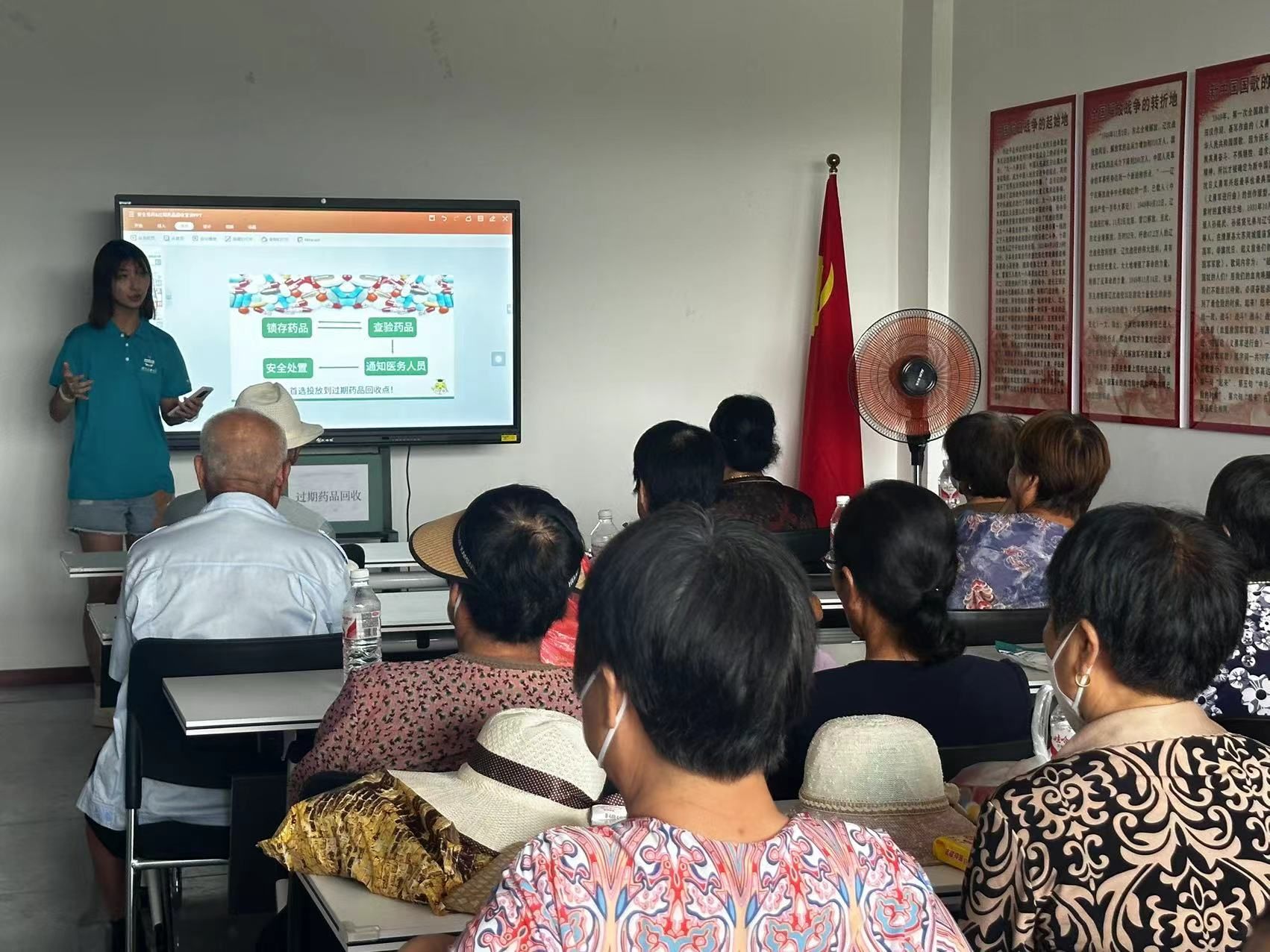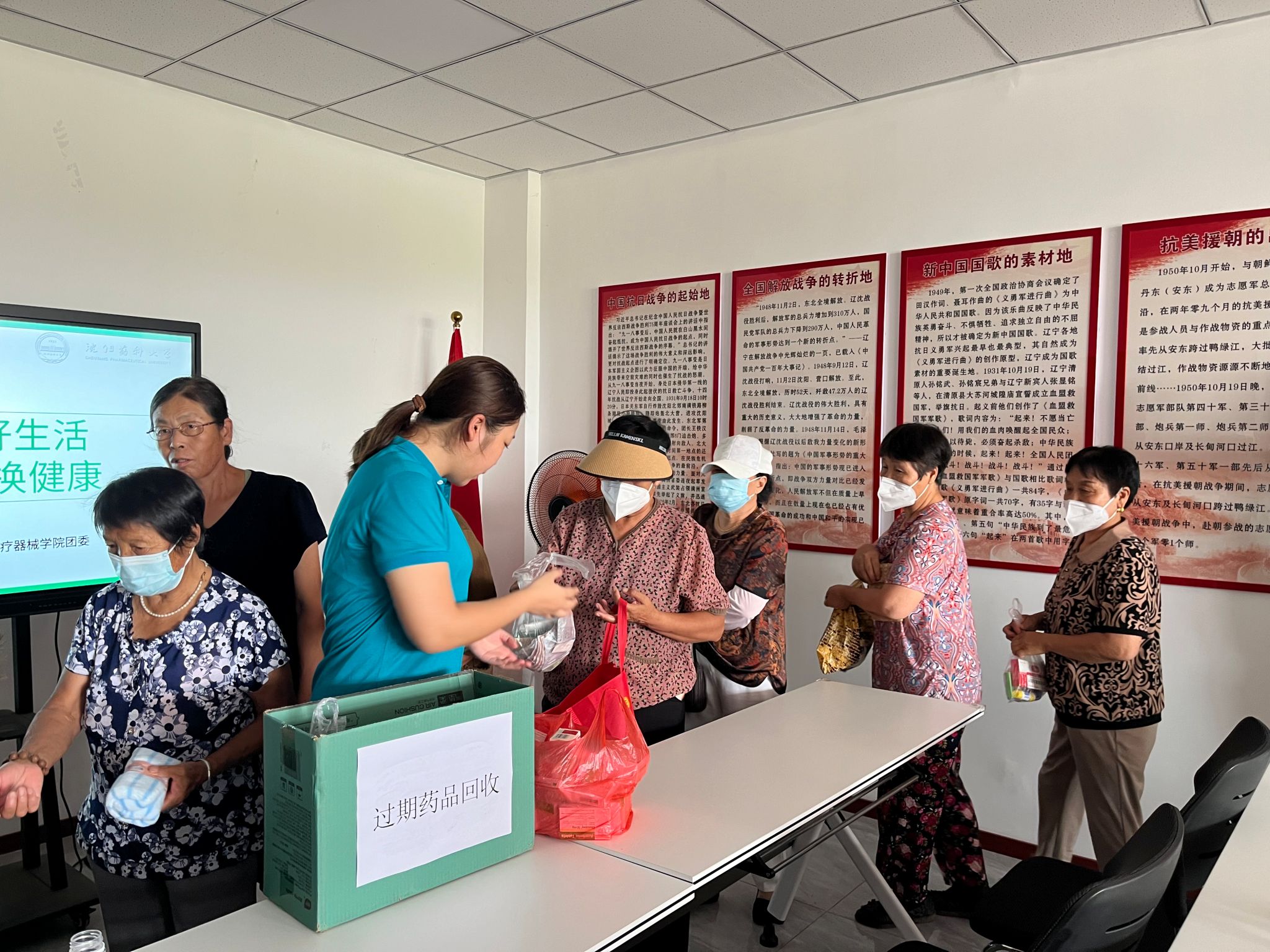 仪式后,已入选全国大学生“乡村振兴·笃行计划”示范性团队推荐名单的欧冠官方网站欧冠官方网站“沈药东沟健康助力团”在东沟村开展实践活动。实践团队成员深入村民群众之中,开展“安全用药”、“过期药品回收”等主题宣讲,从案例分析入手,详细介绍了高血压、糖尿病、中风、心脏病等常见基础疾病的临床表现及作用机制、老年人用药注意事项以及过期药品的安全处置与回收,宣讲语言生动、贴近生活,让老百姓能听得懂、记得住。另外还设立了健康用药服务点,实践团成员将定期到村服务,结合自身专业所长为村民提供专业、细致、耐心地解答,引领村民树立科学用药、合理用药、不盲目囤药的自我健康管理理念。