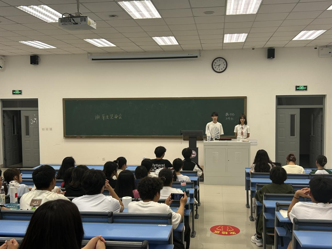 班导生依次向同学们做了自我介绍。每一位班导生都展现出独特的个人魅力和积极向上的精神风貌。他们有着优异的学业成绩、丰富的校园生活经验以及对新生的热忱之心。班导生们鼓励新生努力学习,积极参与社会实践,鼓励学生参与校园文化活动以及社团活动,激发了新生们对多彩校园生活的向往。