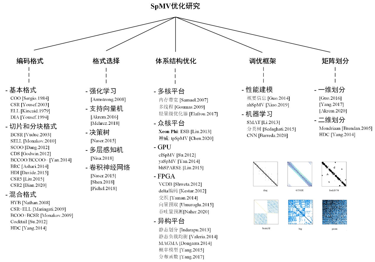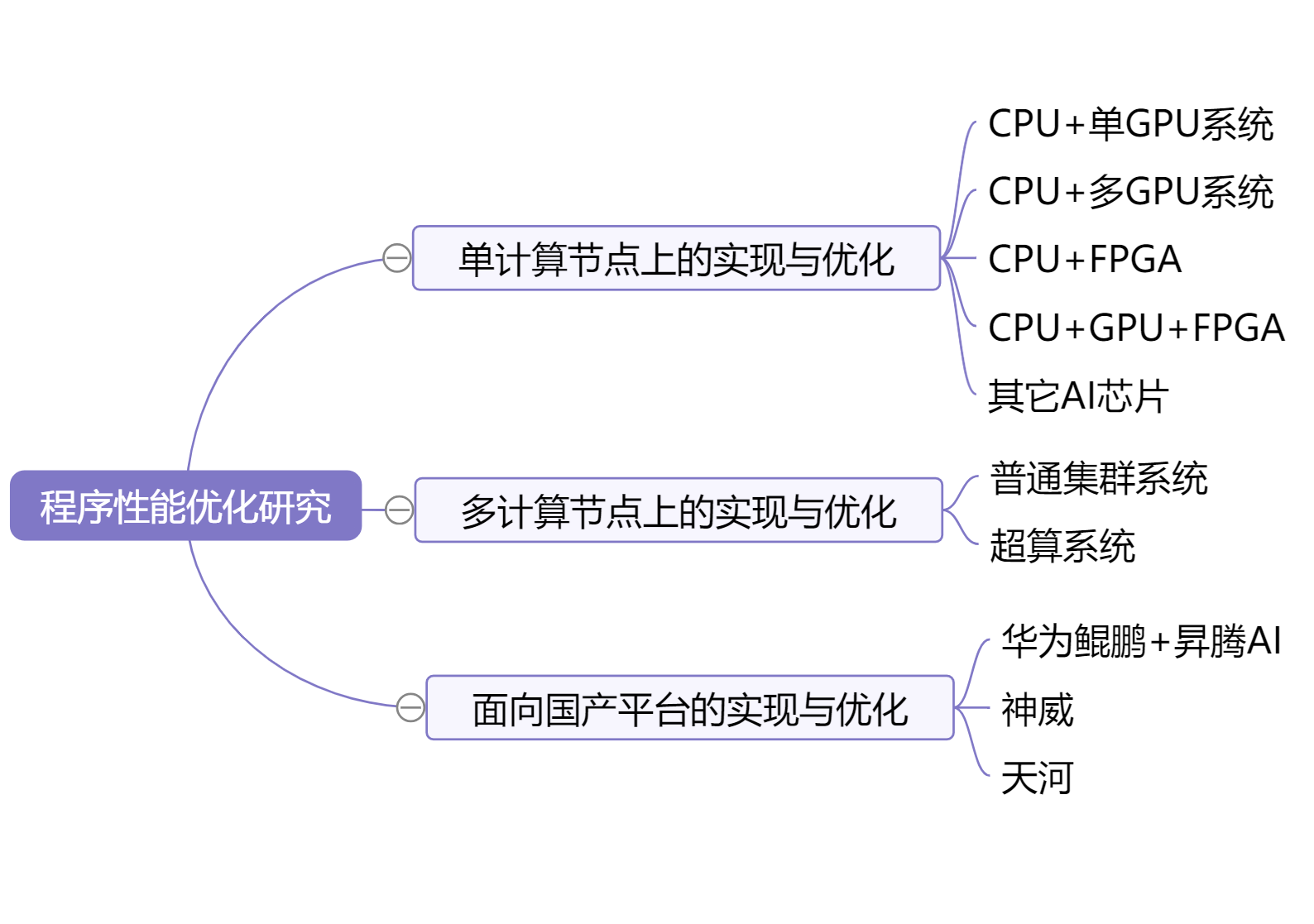 应用软件的核心是由搜索、排序、方程/方程组求解、最优化目标求解等基础算法组成,这些算法的核心又是由矩阵向量计算、FFT、卷积等通用算子组成。我们致力于通用、核心算法/算子在现代异构、并行计算机系统上的实现优化,对稠密矩阵计算、稀疏矩阵计算等开展深入研究,提出了许多优化方法,如基于数学形态学的稀疏矩阵划分与SpMV计算优化等,部分成果已经应用于华为软件开发云等企业产品中。面向电磁仿真、分子对接、电路仿真等科学和工程问题,在应用级、算法级和算子级进行程序性能优化是本科研方向的主要任务。