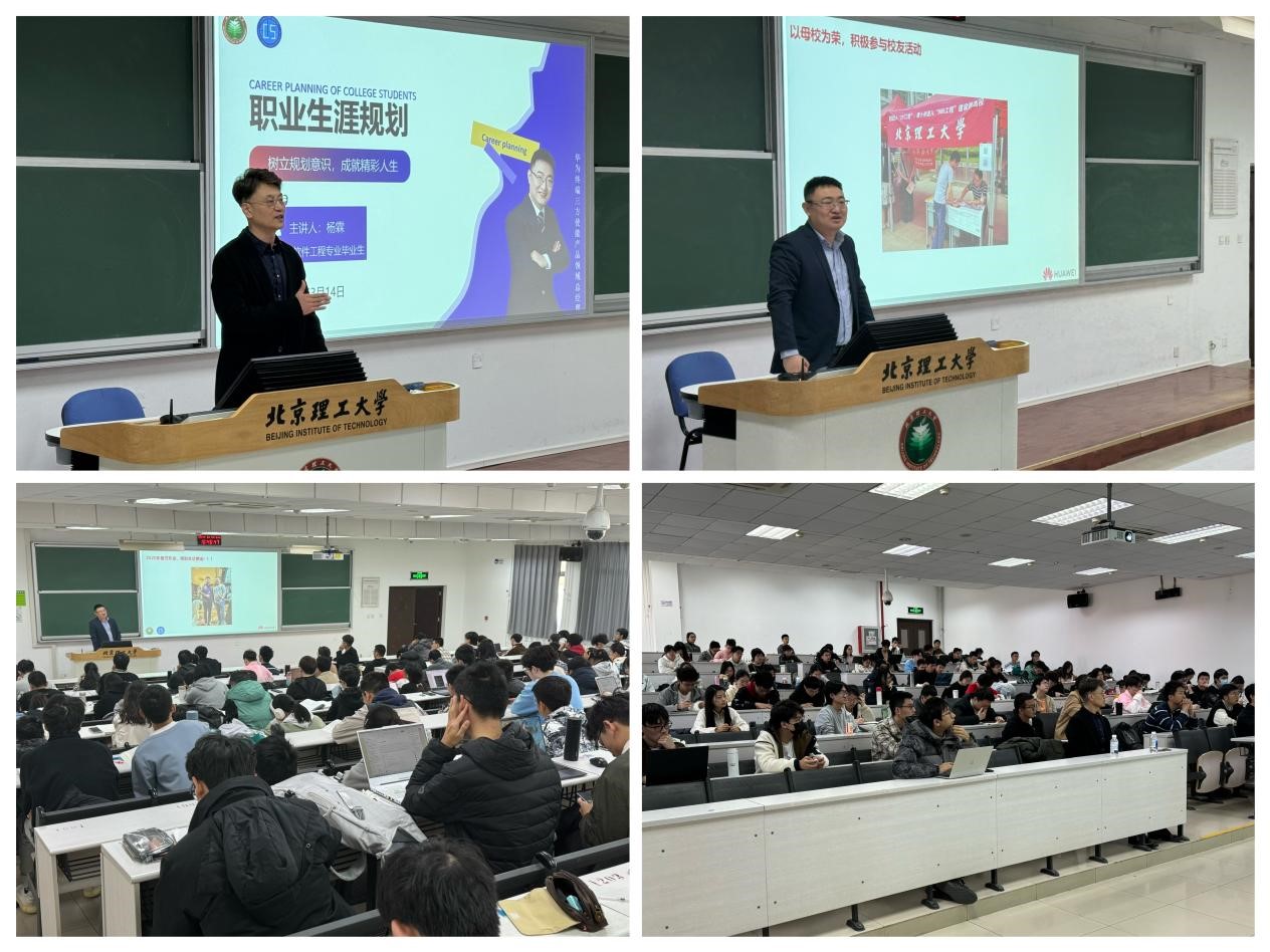 杨霖现任华为终端三方使能产品领域总经理。是软件工程专业数字媒体技术方向的杰出校友,历任华为手机海外市场研发定制软件团队主管、华为终端全球市场软件规划负责人等职务。他以自身的成长经历和领导经验为基础,为学弟学妹提供了宝贵的职业规划建议。他首先回顾了自己在北理工本科阶段的学习经历和成长收获,提醒学弟学妹一定要打好基础,通过学习锻炼工科思维。建议同学们要将理论知识与实际应用相结合,不断提升自己的解决问题的能力。