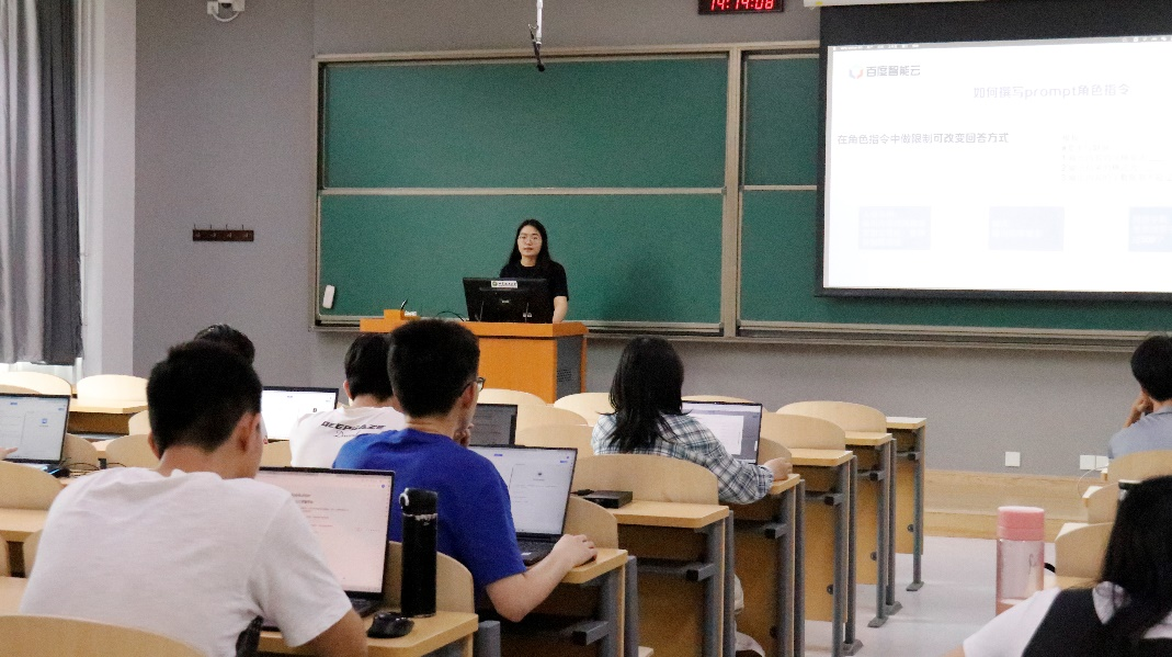 最后,徐菁向同学们介绍了正在火热进行的百度智能云“千帆杯”AI原生应用创意挑战赛-教育行业生态赛。该赛事旨在激励创新、发掘优秀AI应用,参赛者将有机会展示他们在智能应用开发方面的才能和创意,鼓励同学们积极参与比赛,不仅是为了赢得奖项,更是为了在实践中提升自己的技术水平。