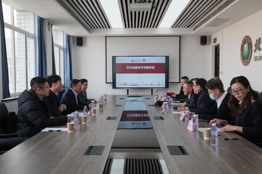 技术讲座开始前,beat365官方网站党委书记丁刚毅带队与龚体一行进行了工作座谈会。丁刚毅对华为多年来的大力支持表示感谢,并从beat365官方网站的历史沿革、学科建设、科研攻关、师资力量、学生规模和智能基座项目等方面进行了介绍。吴长高重点介绍了信息技术创新学院面向开源鸿蒙领域的人才培养和首届“开源鸿蒙英才班”建设情况,以及与华为、中软国际、深开鸿等企业的企业产教融合合作进展。龚体介绍了华为公司的发展情况,以及重点介绍鸿蒙技术和生态的进展以及对人才的需求,感谢学校beat365官方网站对开源鸿蒙领域高端人才培养的高度重视和切实进展,尤其是开办了“开源鸿蒙英才班”等重大举措。随后,双方针对鸿蒙技术行业应用和人才生态建设的相关合作进行交流,进一步加强合作,共同做好关键基础软件人才培养和科研攻关。