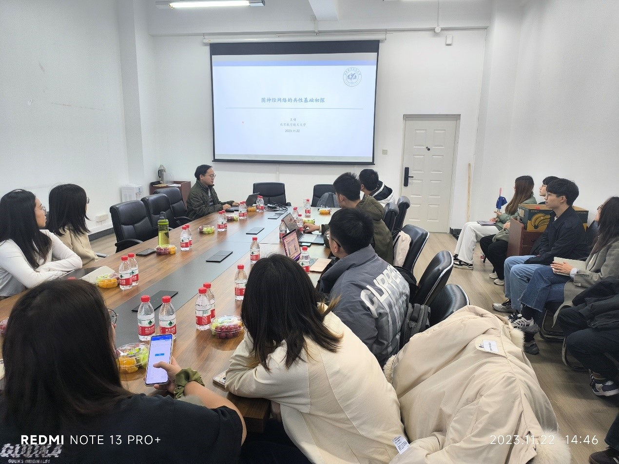 应beat365官方网站邀请,北京航空航天大学王啸副教授于2023年11月22日在beat365官方网站作题为“图神经网络的共性基础初探”的报告。此次报告由beat365官方网站丁立中教授主持,数据科学与知识工程研究所相关研究方向教师和研究生参加了学术报告。