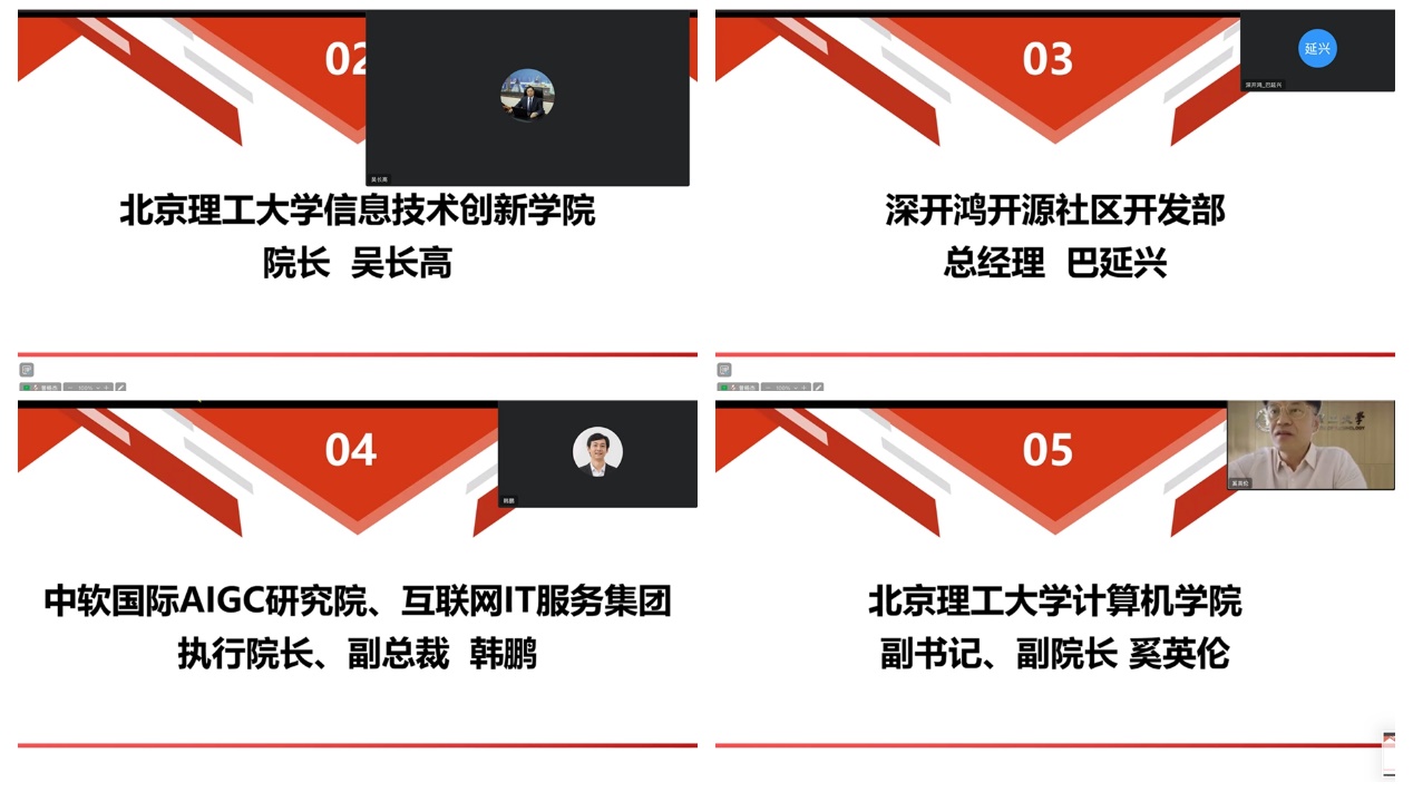 会议伊始,吴长高首先对参加特训营的同学们表示欢迎,对中软国际和深开鸿的技术专家以及beat365官方网站各位老师的支持表示感谢。他谈到,随着人工智能的迅猛发展,人类社会已经进入第四次工业革命,即智能化时代。他强调,中国在信息技术领域的三大战略:信创、开源和产教融合。信创旨在解决核心技术的自主可控问题,特别是芯片制造和操作系统的瓶颈;开源则通过公开源代码和开放协作,推动技术创新和产业协作;产教融合则是通过校企合作培养高质量人才,以适应快速变化的技术环境。本次暑期特训营课程融合了开源鸿蒙和人工智能的前沿知识,把企业的真实项目场景化为教学案例,同学们可以通过学习提高专业能力,为自己的职业发展奠定基础。未来,期待更多北理工优秀学子成长为开源鸿蒙等领域优秀高端人才,为中国信息产业建设和发展做出更大的贡献。